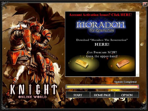 | To begin, click the Knight Online icon on your desktop. This will bring up the game's launcher window: |